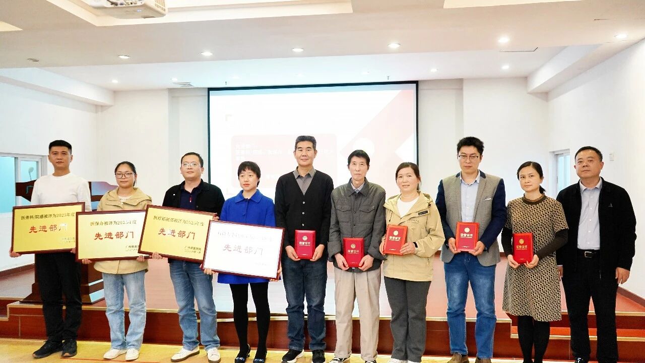 接着,汪金枝总监宣读了医院2025年度先进个人、先进科室、资深专家等表彰决定,号召全院医务人员以获奖的先进集体和个人为榜样,坚定信心、开拓进取,为加快建设高水平医院而努力奋斗!并为重症医学科、综合一病区、综合三病区、超声科等十二个先进集体和孙照琨、黎展超、辛晓莉等八十位先进个人颁发了奖牌、奖状。